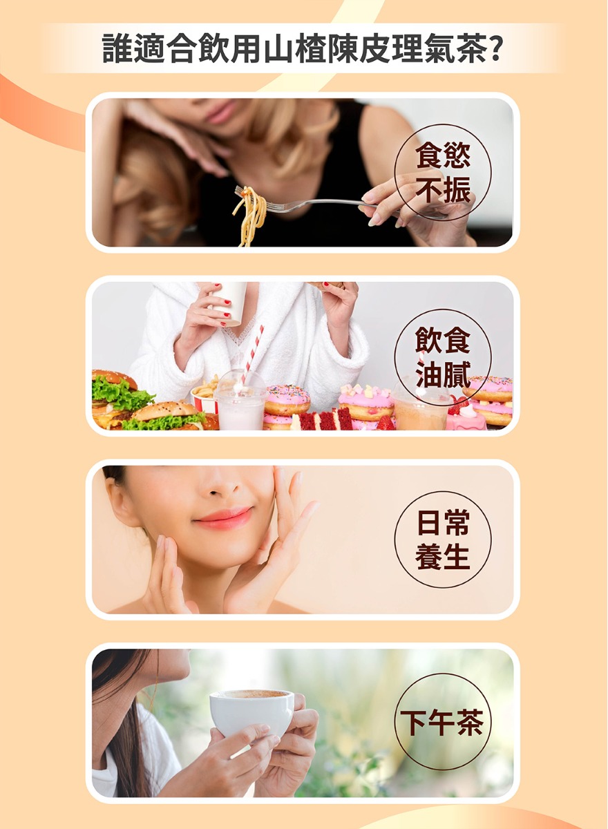 產品成份:山楂、陳皮、甘草、紅棗、佛手干、甜珠草 (Hawthorn Fruit, Aged Tangerine Peel, Liquorice Root and Rhizome, Jujube Fruit, Finger Citron, Dry Scoparia dulcis L.)